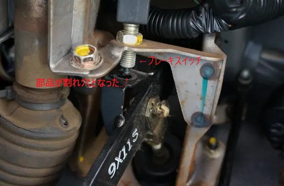 このブレーキランプが消えない症状の大半は、ブレーキスイッチストッパーという小さなプラスチックの部品!ブレーキペダルを検知するセンサーは、このストッパーに当たる事によりスイッチングしていますが、プラスチックの部品が経年劣化で頻度のペダル操作に耐えられず割れてしまいスイッチが押されなくなります。